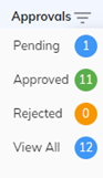 - The invoice log will prioritize invoices in draft mode and invoices pending approval. Using the filter for the Approvals column will allow you to view items in other statuses, such as approved or rejected invoices.