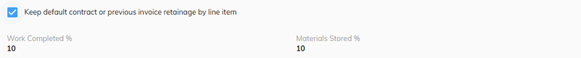 j) Check the box if you want to keep default contract or previous invoice retainage by line item.