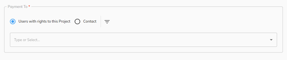 g) Select Payment To either by a user or contact. In the below field type in the name of the user/contact to select.