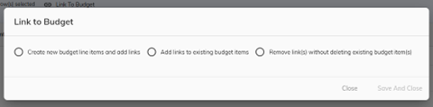 iii) Select Remove link(s) without deleting existing budget item(s) to unlink the line items from the current budget subitems that they are linked to.