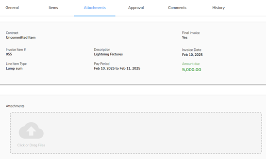 5. Click Save and Next to get to the Attachment Upload any required backup documentation for the invoice.